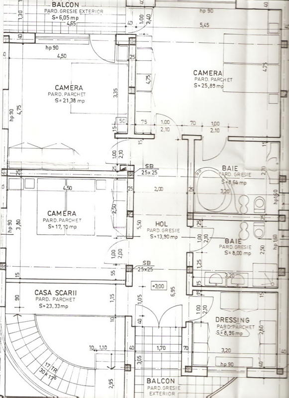 1 living, 4 dormitoare, 3 bai, 1 bucatarie + camara, tereasa, camera tehnica, dressing, 2 balcoane, mansarda generoasa necompatimentata.